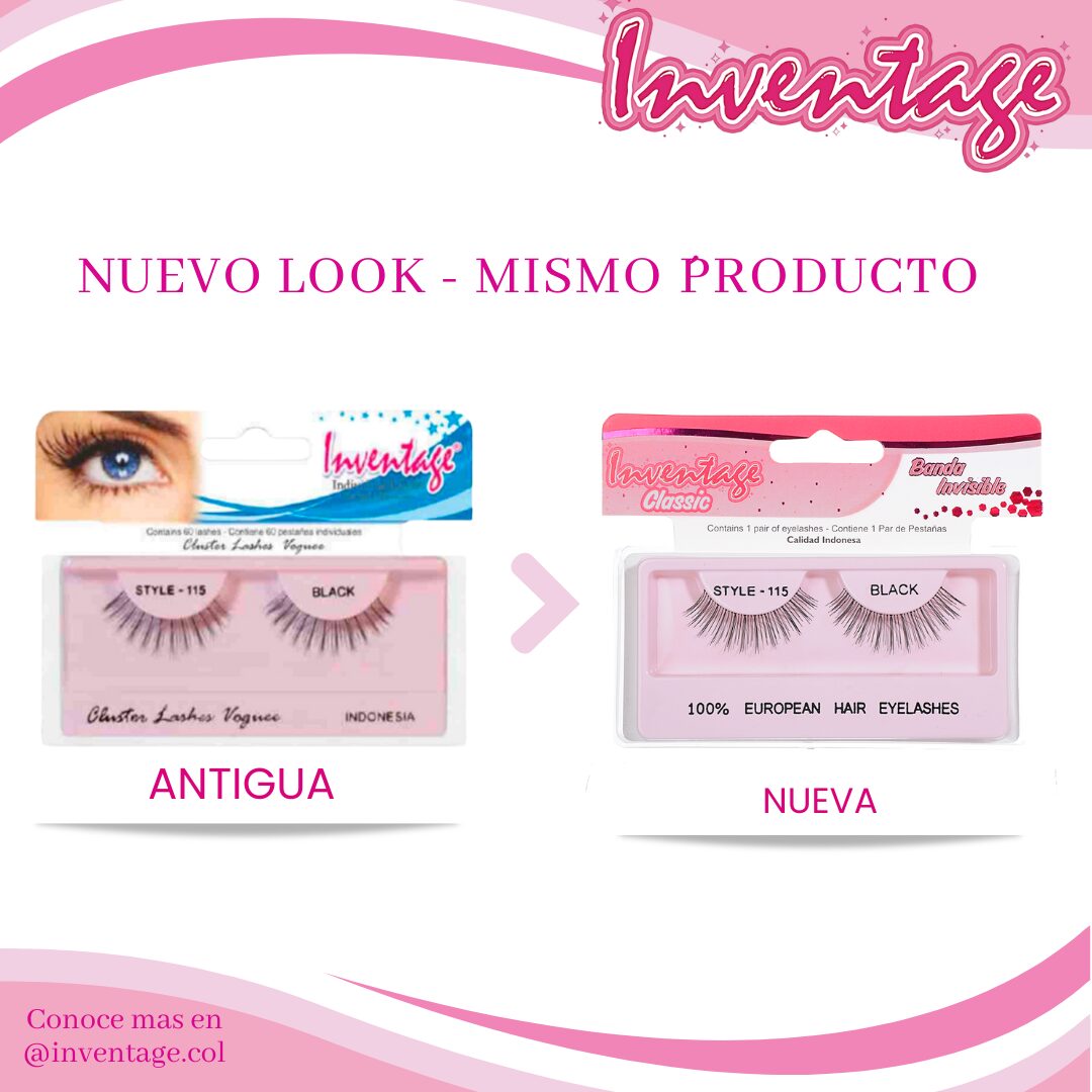 Pestañas Classic en Tira Inventage 115, color negro. Nuestras pestañas Inventage de la más alta calidad cuentan con reconocimiento en el mercado colombiano hipoalergénicas, suaves, livianas de origen 100% de indonesia.